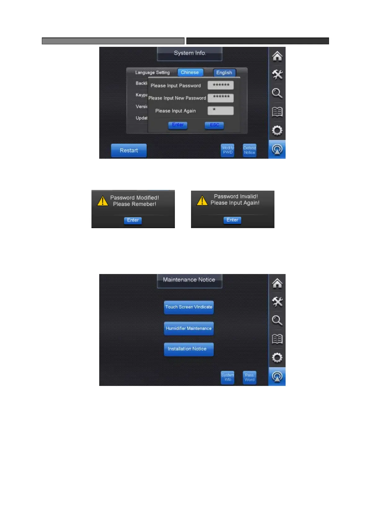 Slightly touch the button “Maintenance Notice” to switch to the page of maintenance notice.