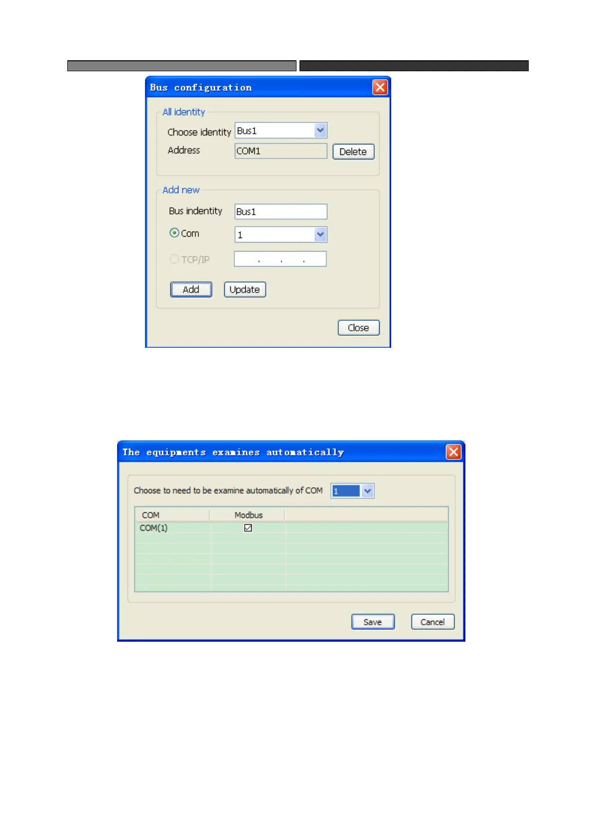 In this example, COM(1) and Modbus are selected as the above figure and then click Save.