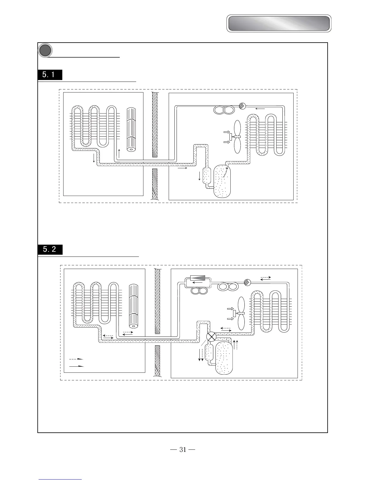 When the system operates in heat mode, 4-way valve changes its way and the refrigerant flows into the reversible cycle as the cool mode. The