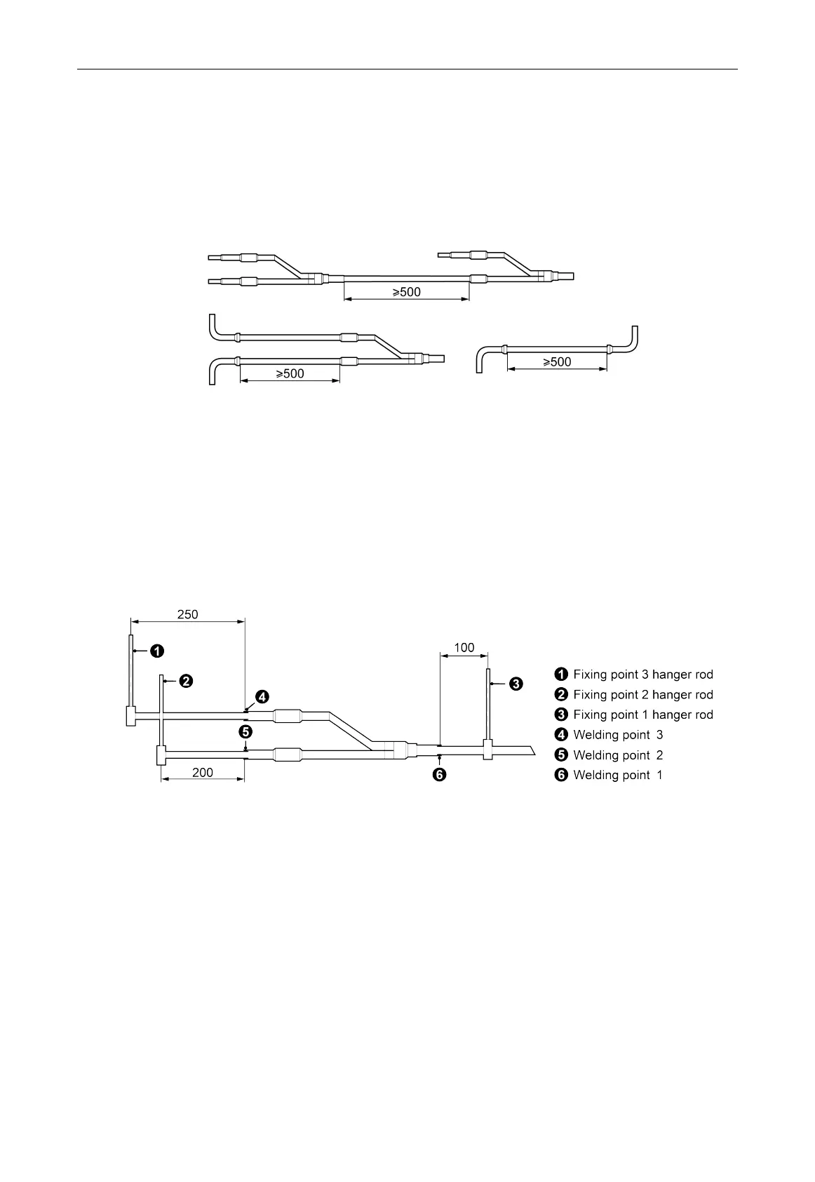 Fixing point 2: 200mm on the main branched pipe from the welding point