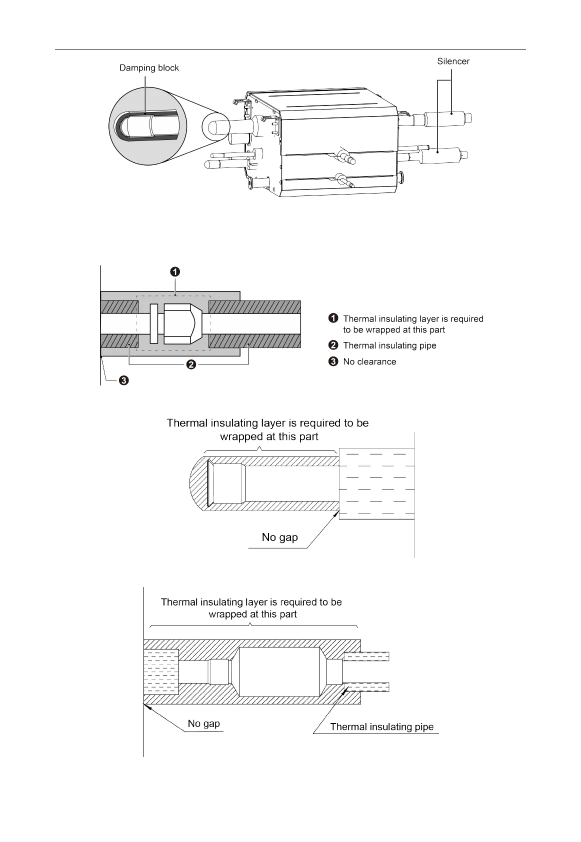 gap to surfaces of indoor unit and outdoor unit. See Fig.4.2.13 , Fig.4.2.14 and Fig.4.2.15.