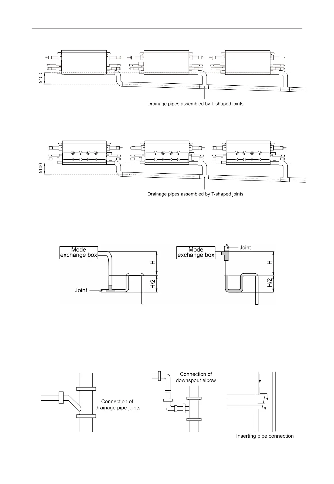 (8) Horizontal pipe can’t be connected to the vertical pipe at the same horizontal height. Please