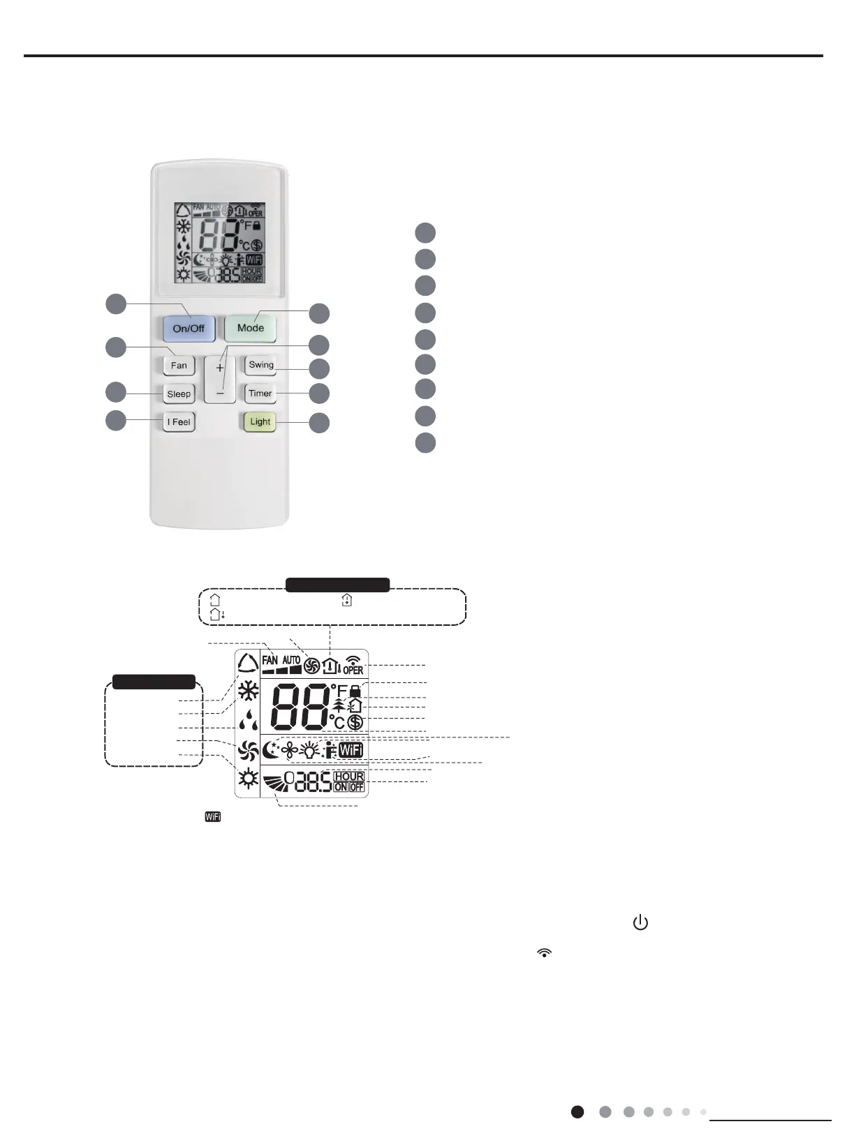 off and light functions are set, the corresponding icons will be displayed on the display of remote controller at the sam