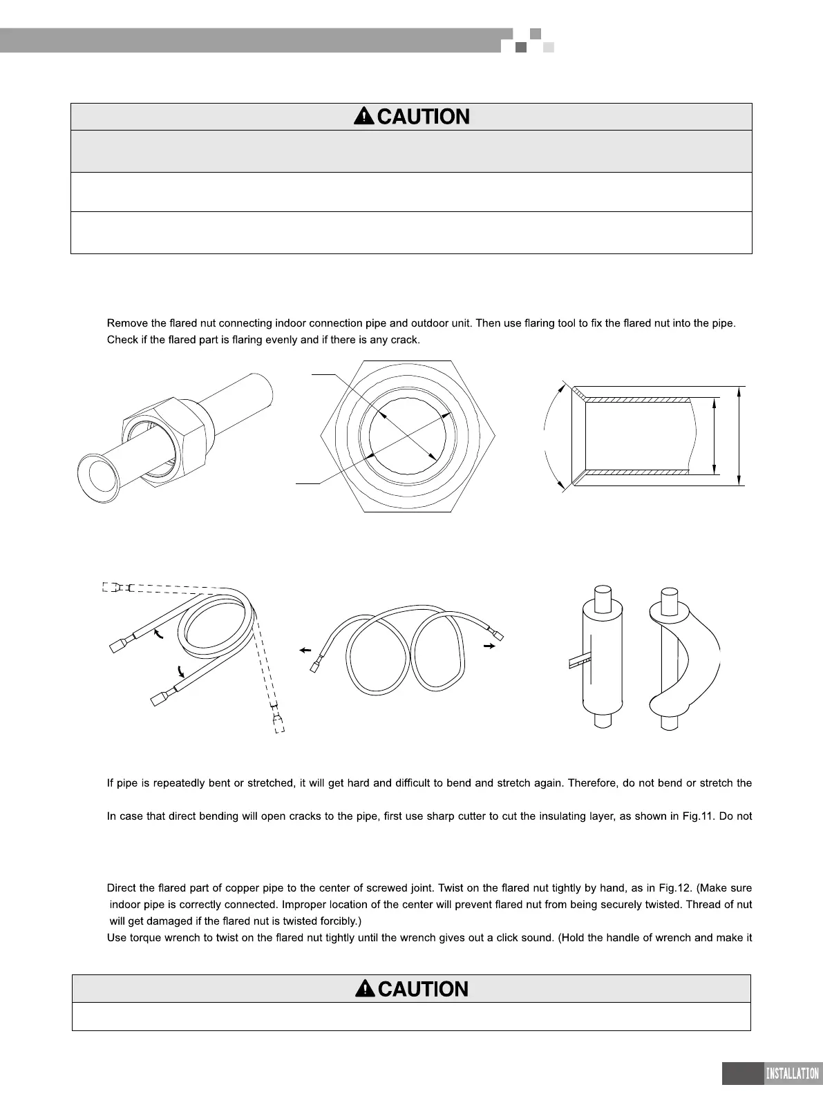 2) Weld the connection pipe between indoor and outdoor units. Please strictly follow the requirements for