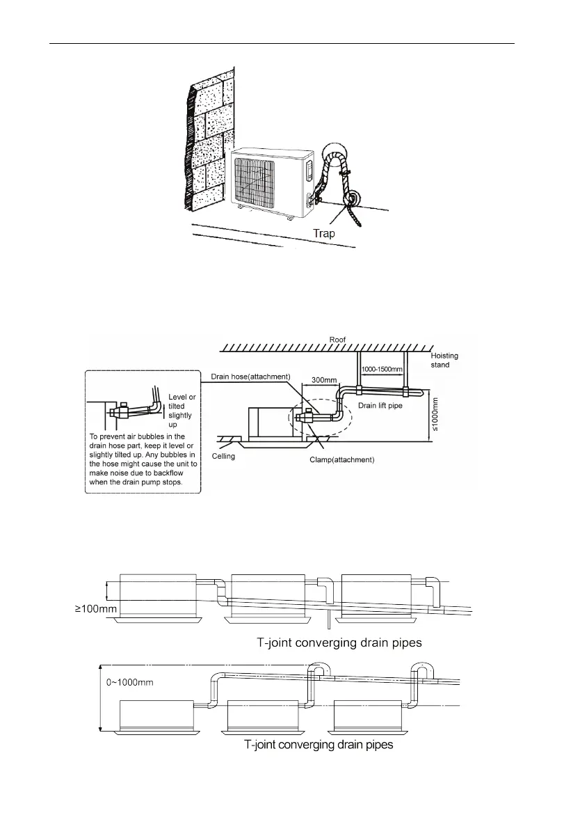 (1) The drain lift pipe should be 1000mm or less away from ground, as shown