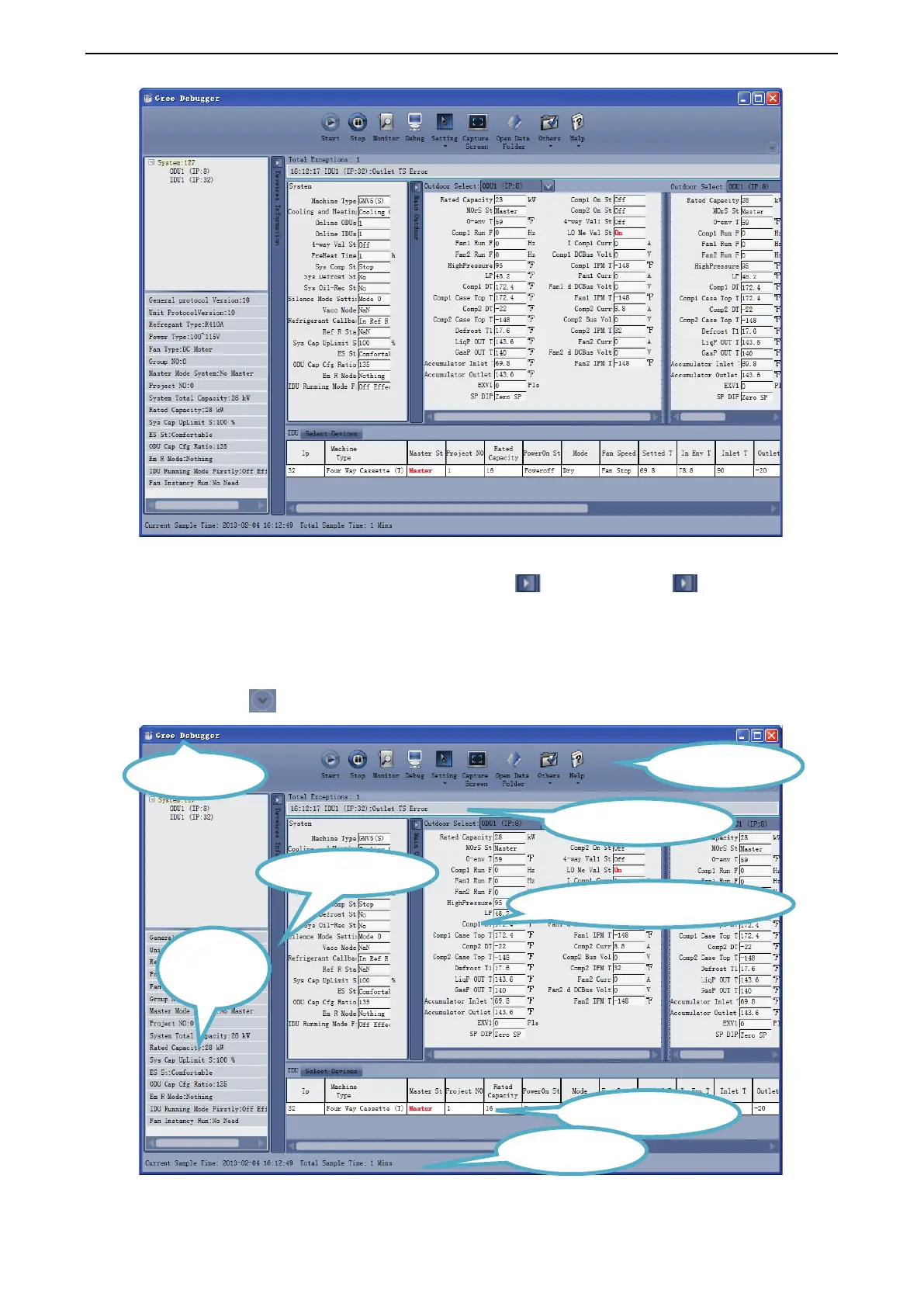 indoor unit information and errors can be dragged up and down at the dividing lines. As to the