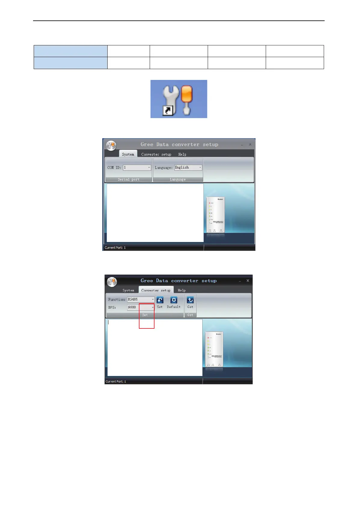 4) Select the function that is to be set and the corresponding baud rate (refer to the look-up