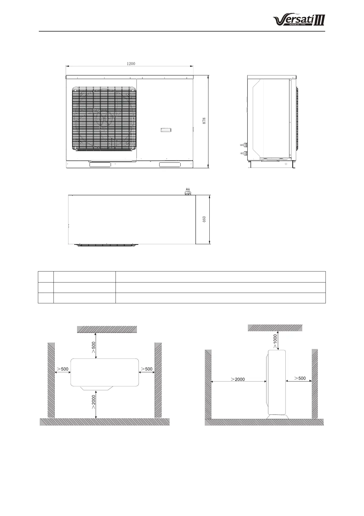 la distance entre l’unité et la barrière la plus proche des trois autres côtés ne doit pas être inférieure à 300 mm ; pour