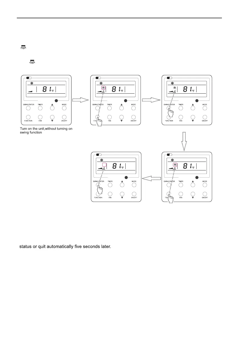 Swing On: Press FUNCTION under on state of the unit to activate the swing function. In this case,