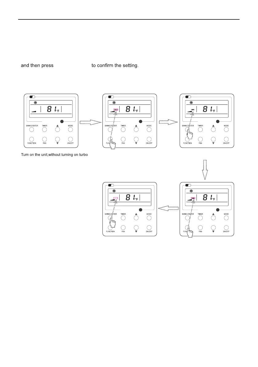 In the Cooling or Heating mode, press FUNCTION till the unit enters the Turbo setting interface