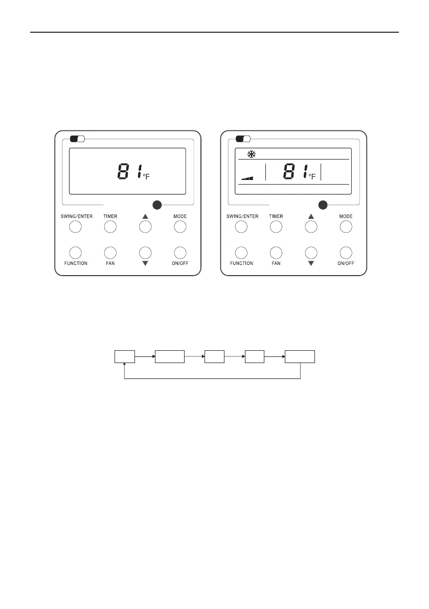 Under the “ON” state of the unit, press MODE to switch the operation modes as the following