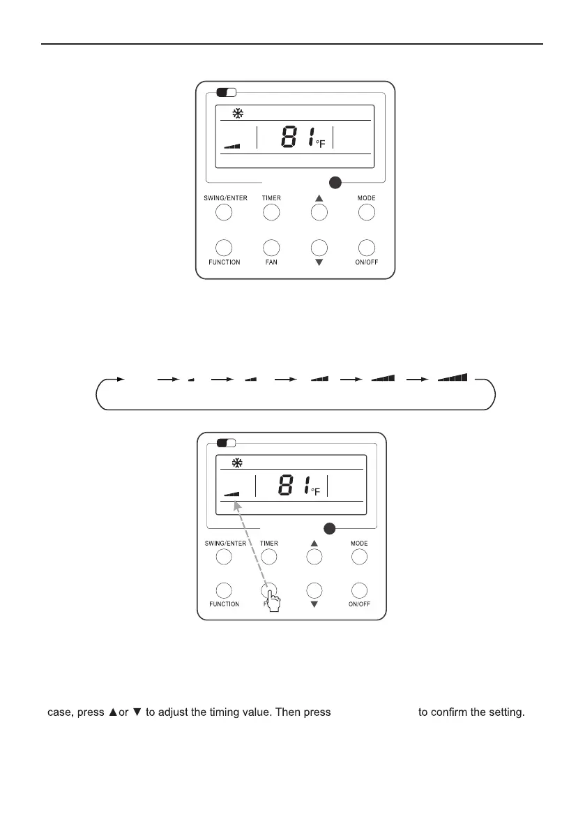 Under the “ON” State of the unit, press Fan and then fan speed of the indoor unit will change