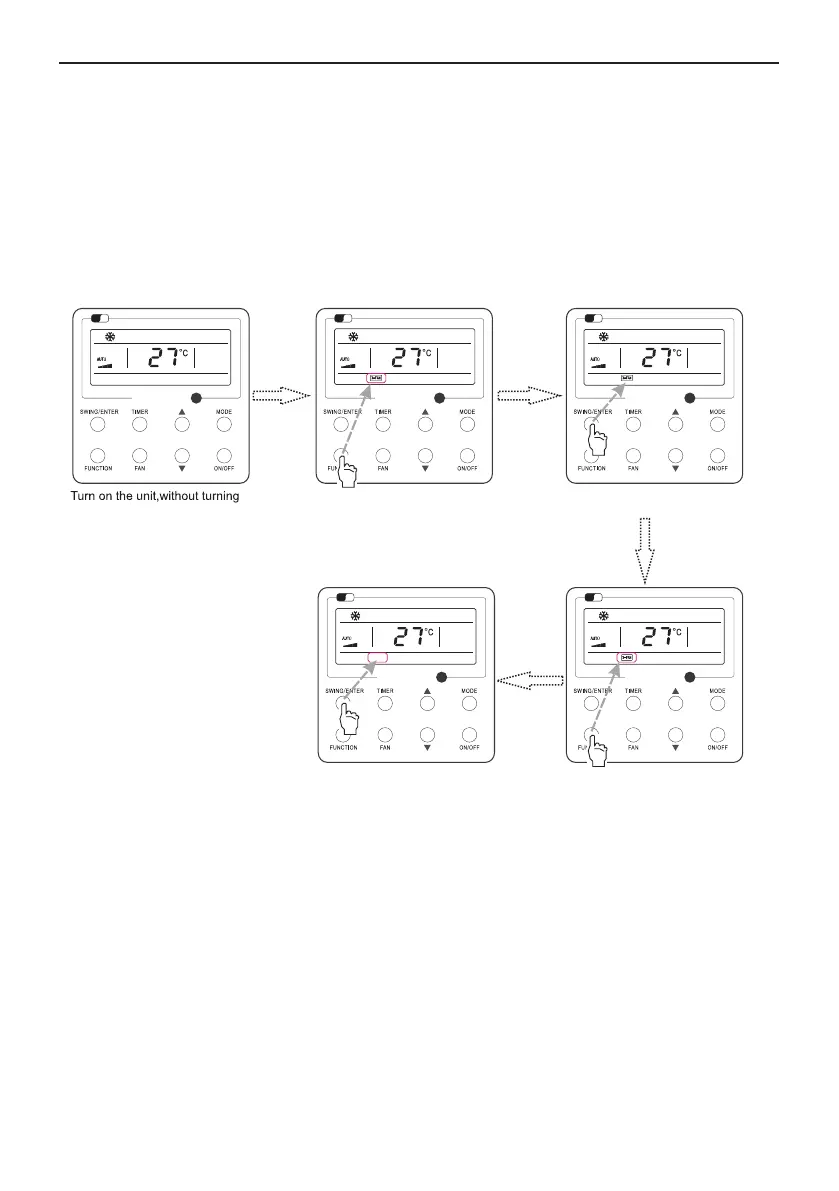In the Cooling or Dry mode, press FUNCTION till the unit enters the X-fan setting interface and