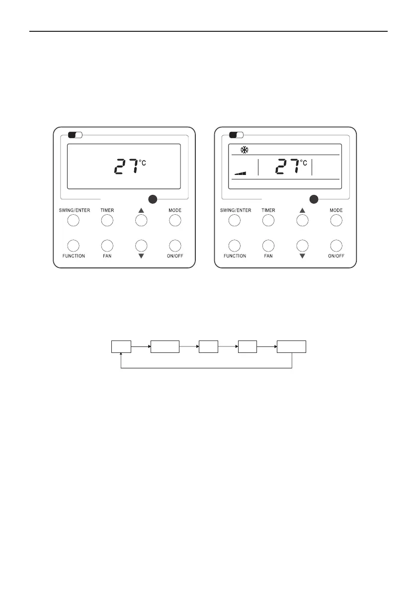 Under the “ON” state of the unit, press MODE to switch the operation modes as the following