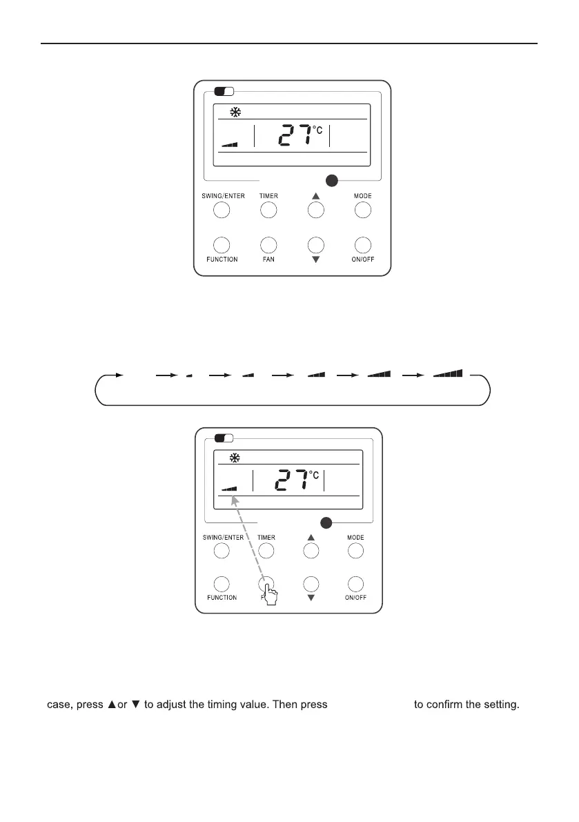 Under the “ON” State of the unit, press Fan and then fan speed of the indoor unit will change