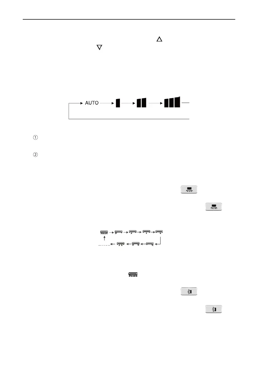 ajustar el ángulo de oscilación horizontal cíclicamente tal y como se indica