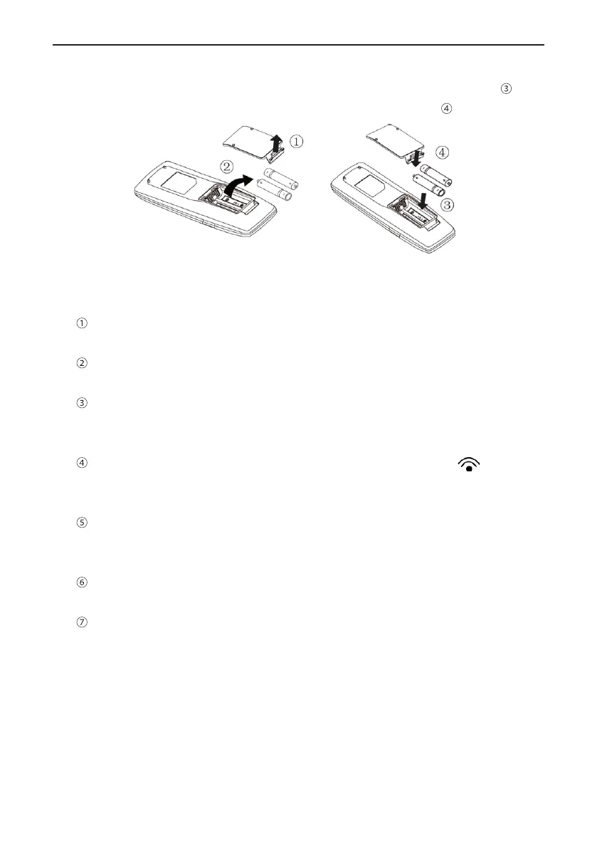 (3). Inserte dos pilas 7# (AAA 1,5V) y asegúrese de que los polos "+" y "-" se