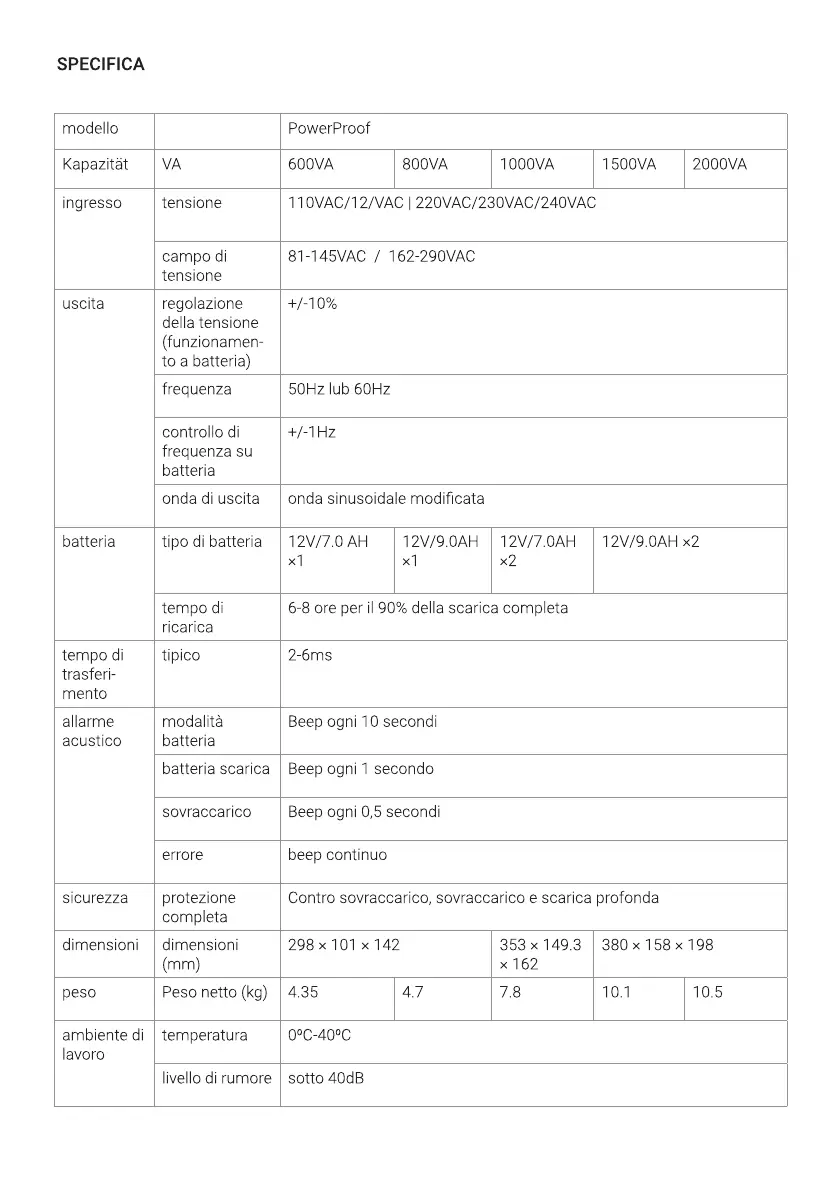 Kapa zität VA 600VA 800VA 1000VA 1500VA 2000VA