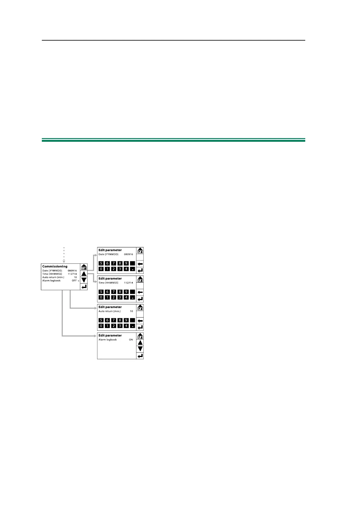 Alarm logbook: ON/OFF mode is set here. If the Alarm logbook is ON, the alarm log-