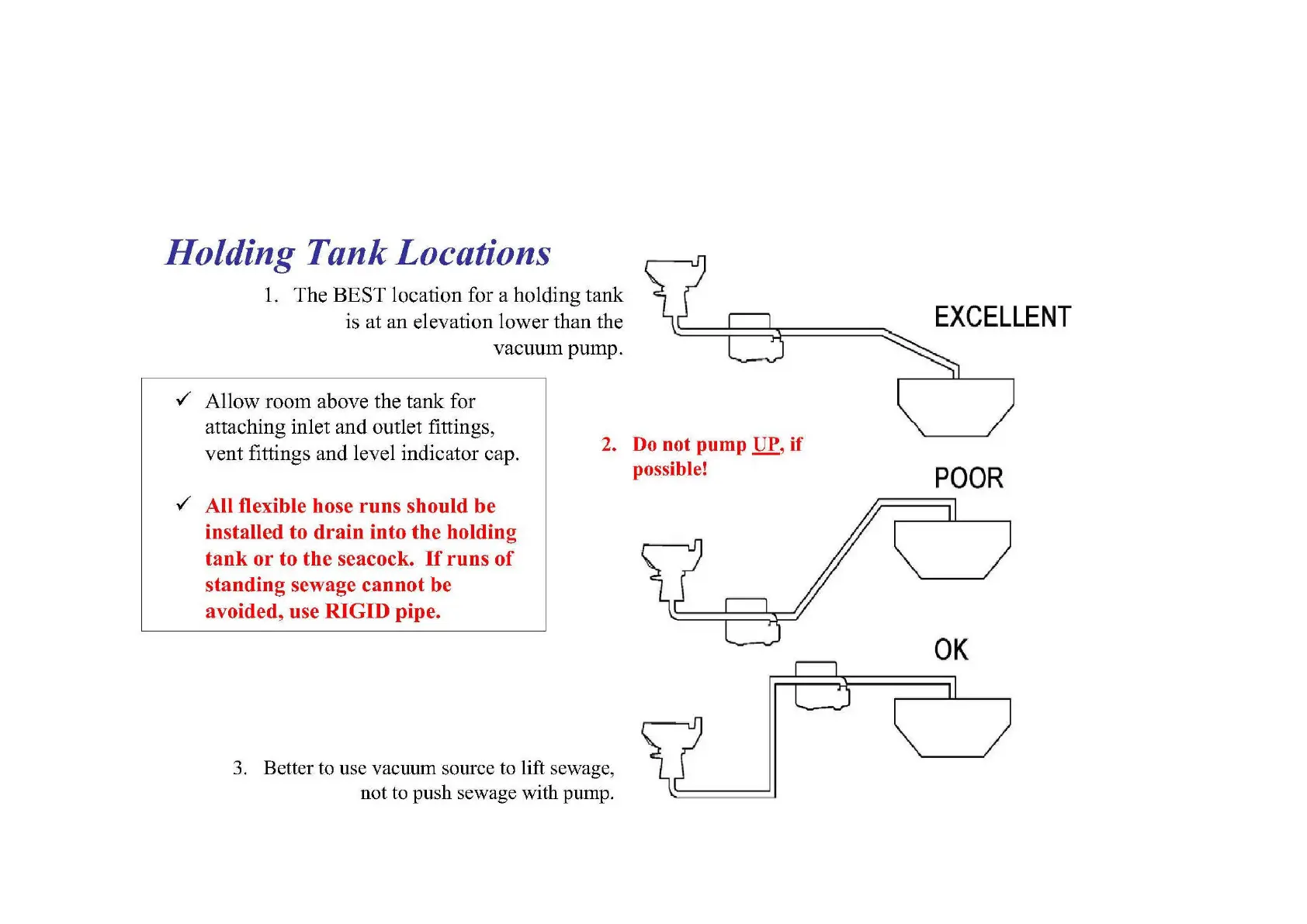 GREEN LOO GT 120 - Holding Tank Locations and Pumping Advice; Avoid Pumping Up Sewage; Holding Tank Optimal Locations
