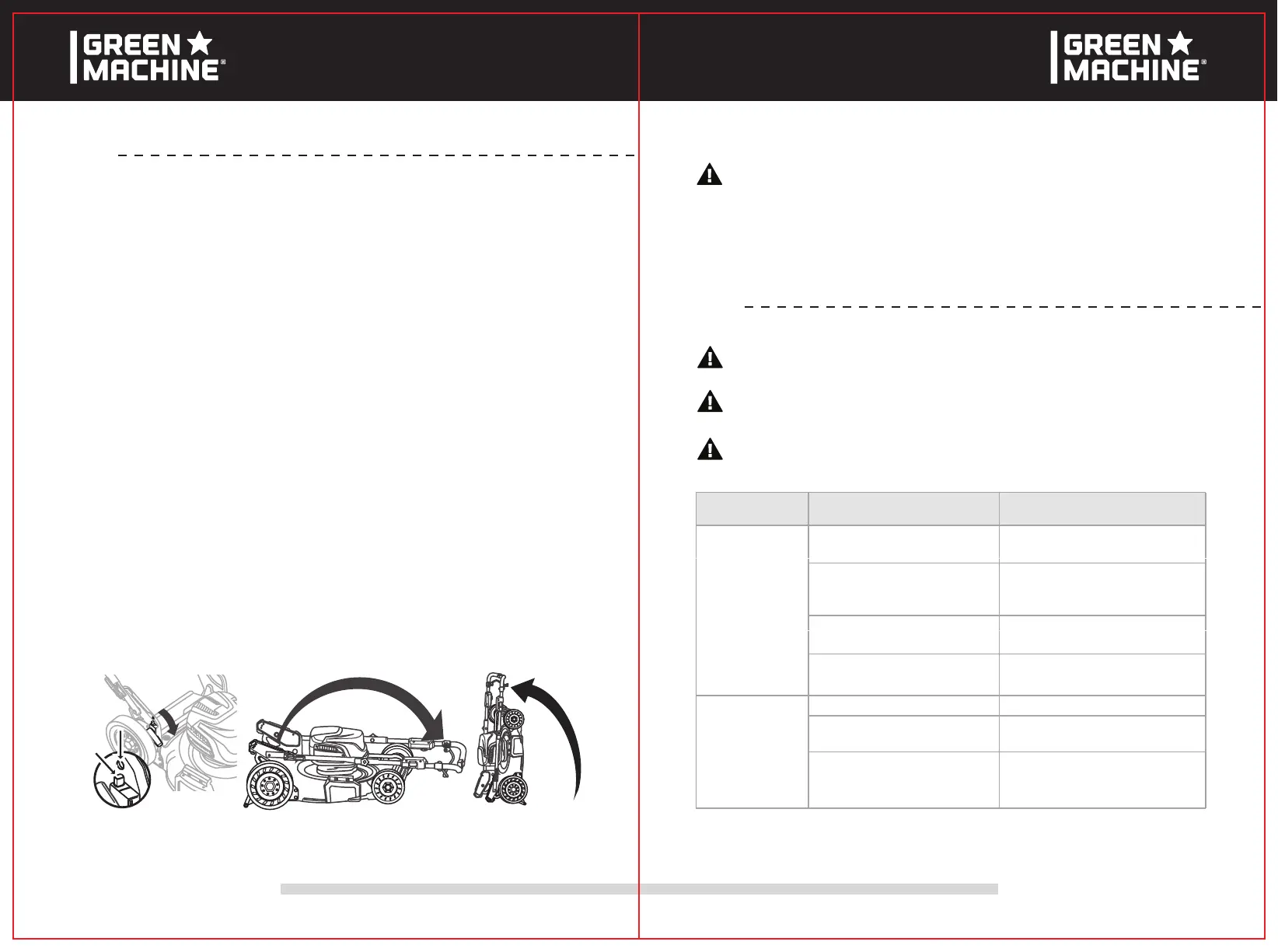 WARNING: If you cannot fix your lawn mower using the following table, take your