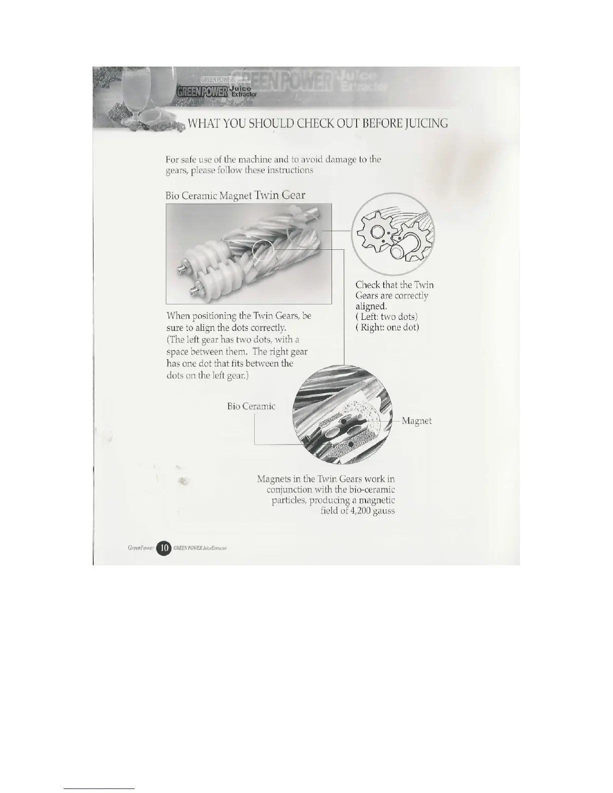 Green Power KP-E1304 - Pre-Juicing Checks and Gear Alignment; Bio Ceramic Magnet Twin Gear Alignment; Twin Gear Technology Explained