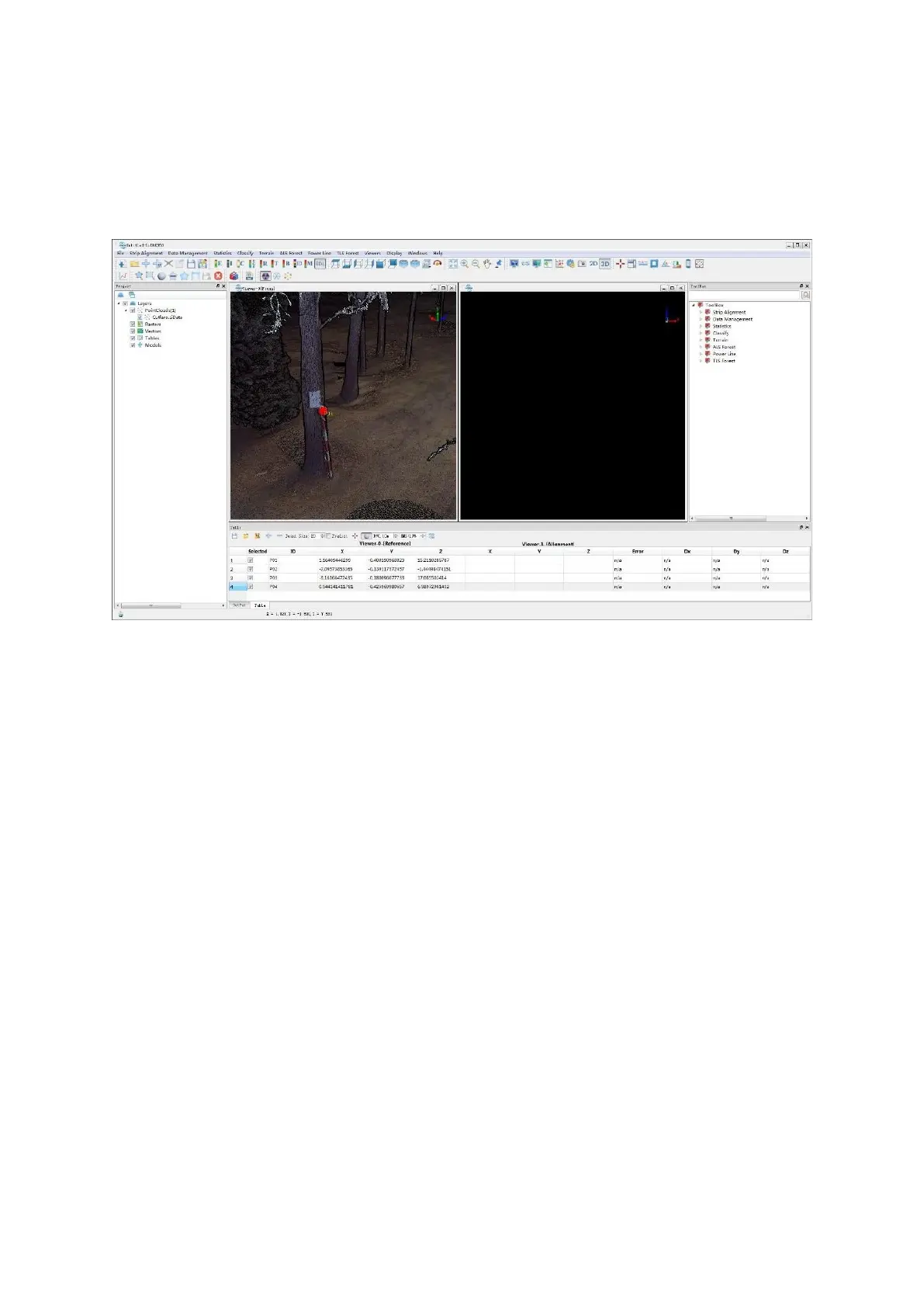 alignments and/or georeferencing processes. When target spheres are not available, you can align multiple point clouds with LiDAR360’s