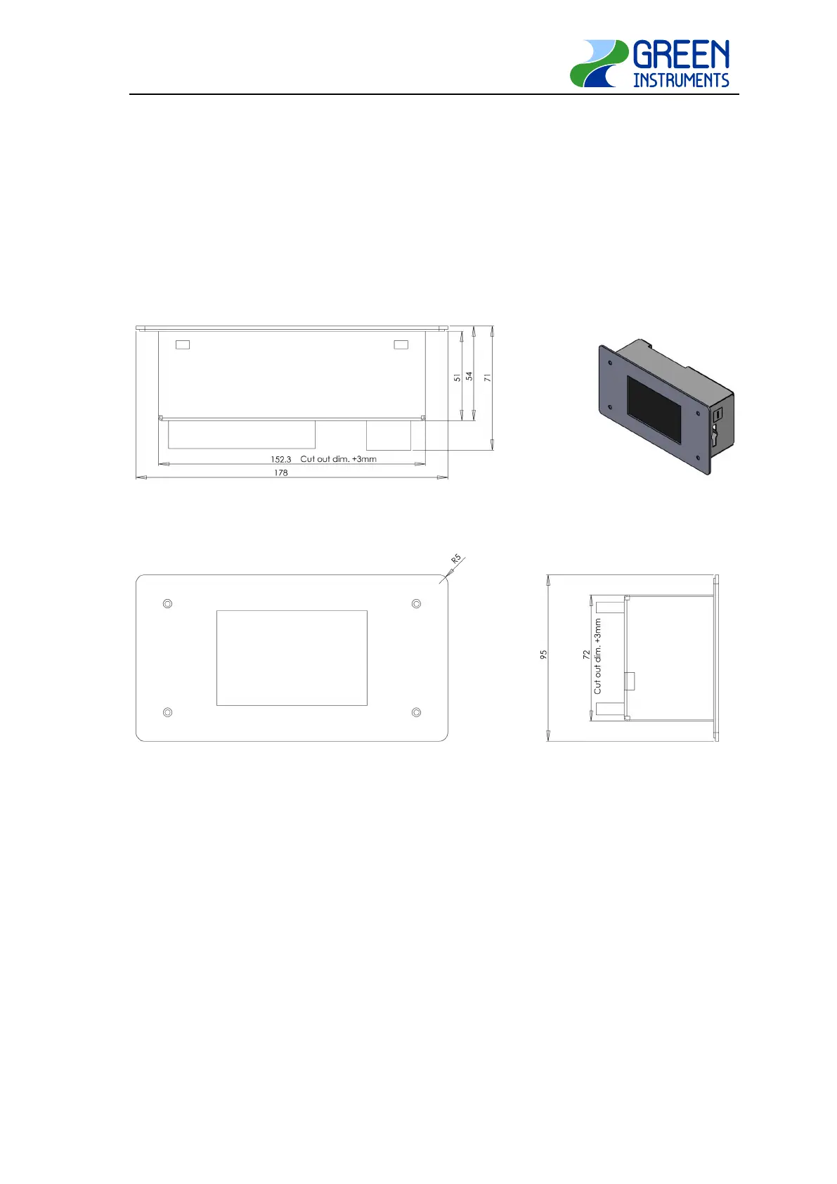Green G36P - Cutout Dimensions; Figure 10-2: Cutout Dimensions for G36 P Oxygen Analyzer