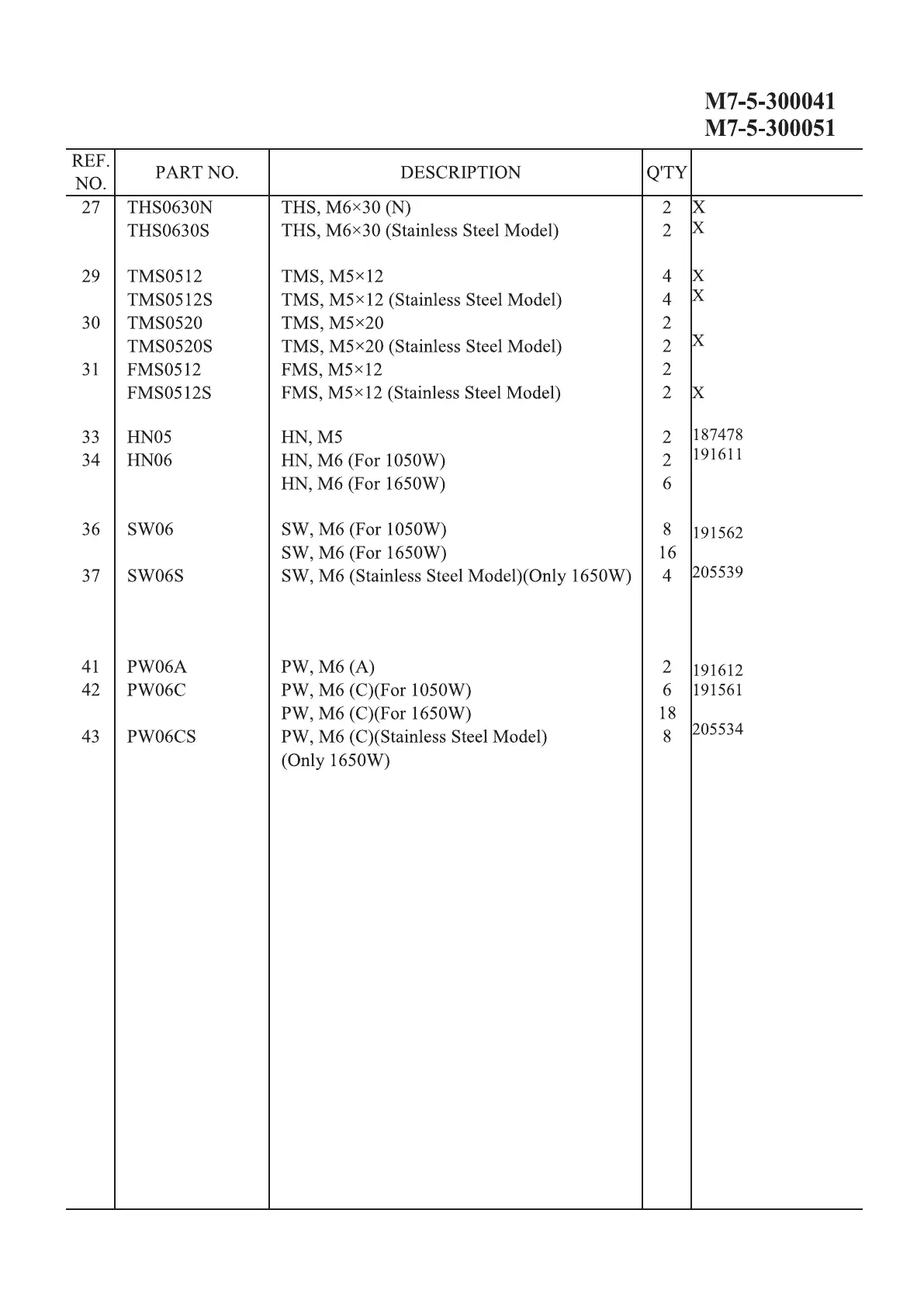 (For 1050W/1650W)