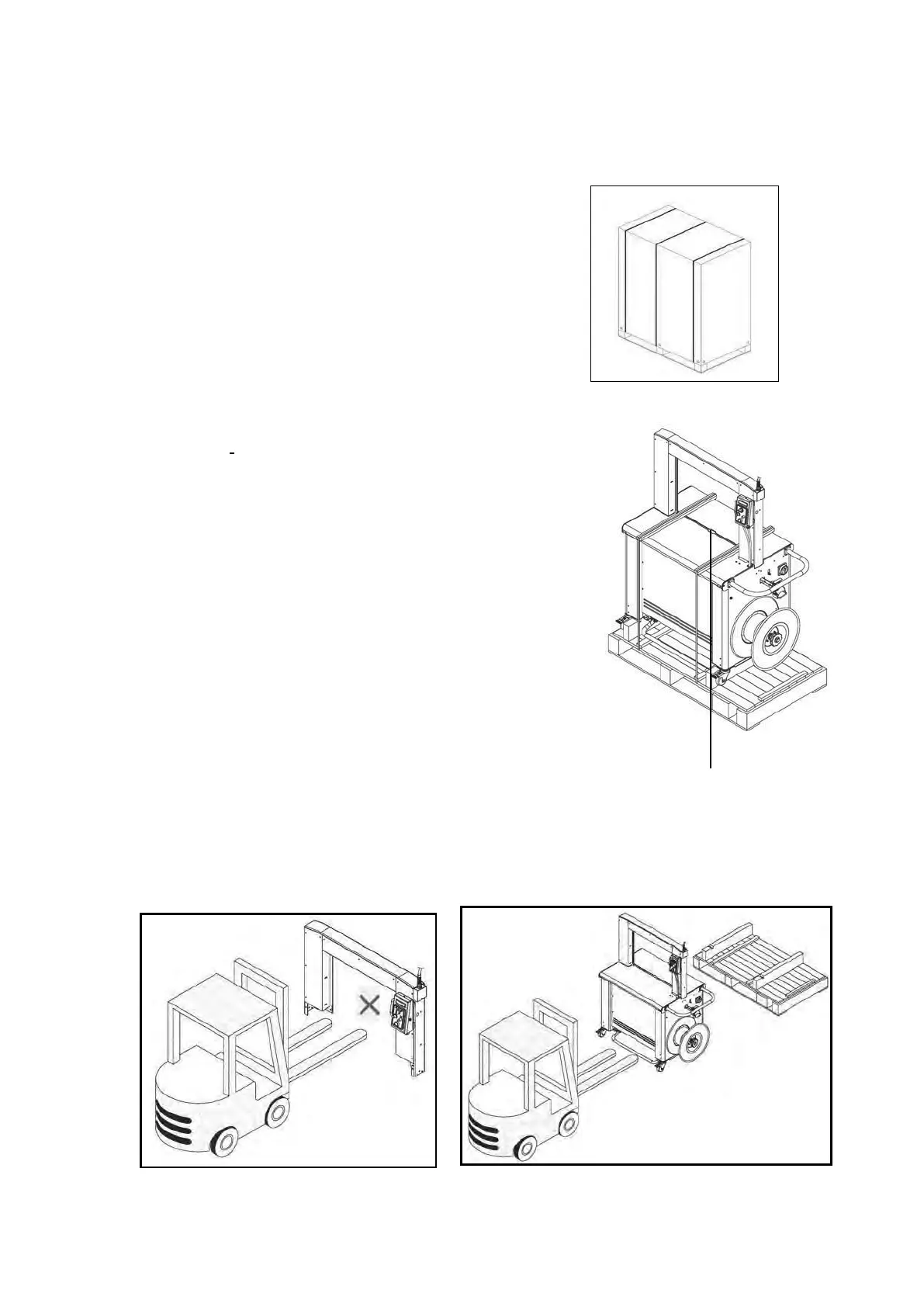 Transport the strapping machine on a pallet. Lift the unit