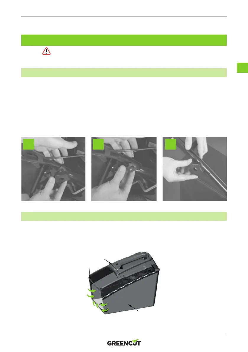 indem Sie die seitlichen Löcher mit denen des Mähers an der Rückseite der Abdeckung ausrichten.