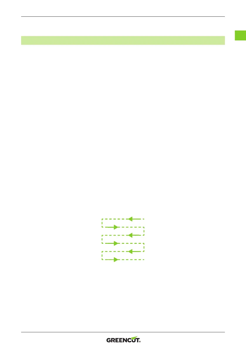 • Coupez l’herbe en rangs légèrement superposés. Un système efcace consiste à couper en ligne droite, en