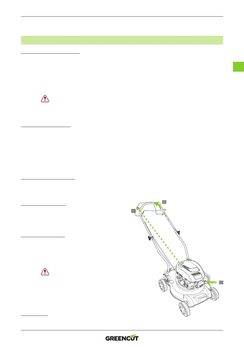selbstfahrenden Hebel ein- und ausgeschaltet. Wenn die Stange losgelassen wird, stoppt das Gerät. Die