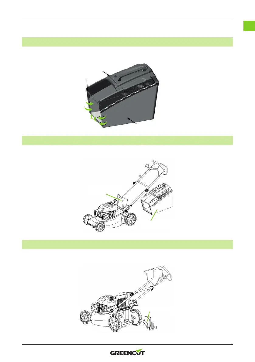Levante la tapa de descarga trasera con una mano y enganche la cesta de recogida. Suelte la tapa de descarga trasera