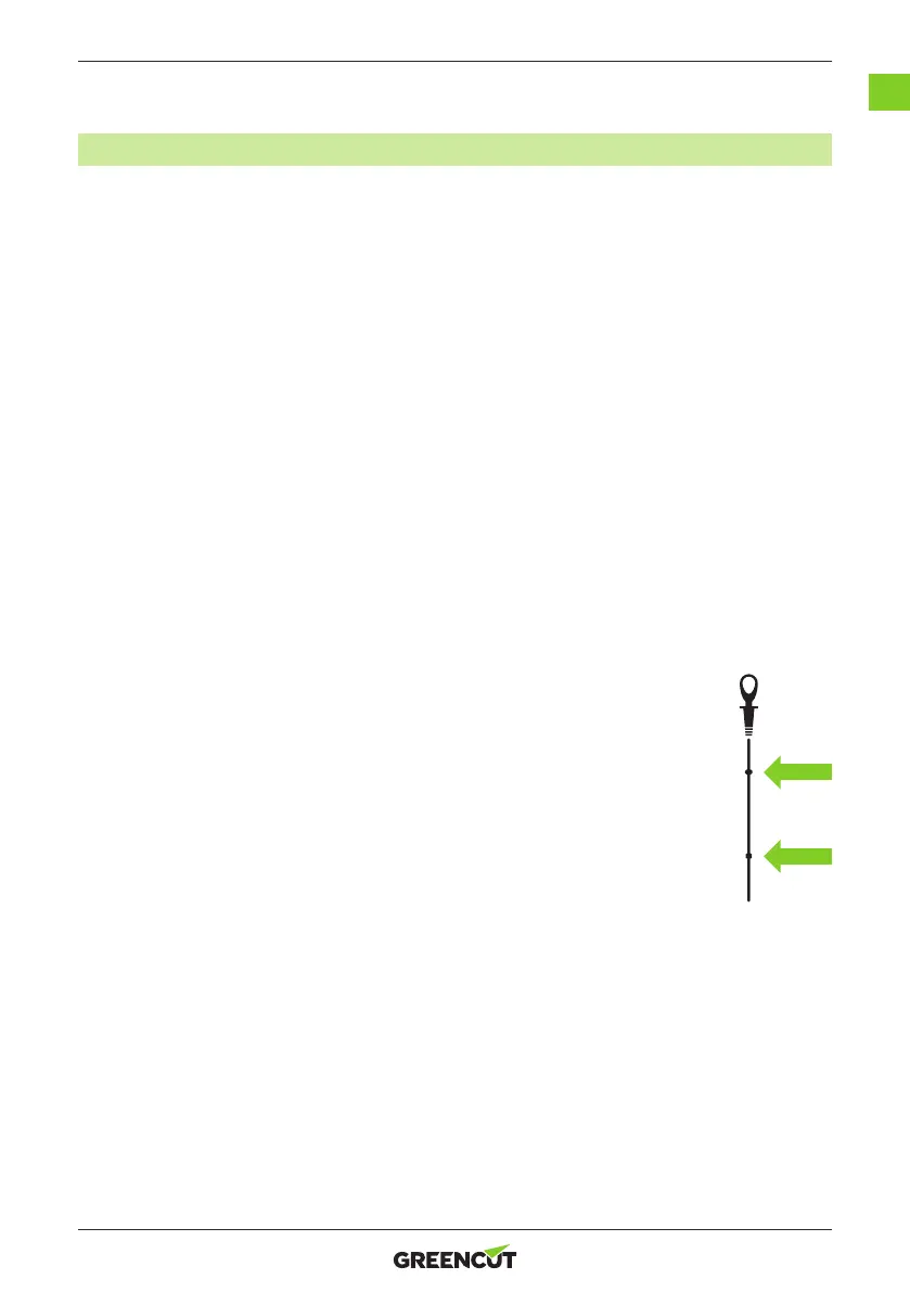 • Compruebe siempre el nivel de aceite cuando la máquina esté de pie sobre una supercie plana y nivelada.