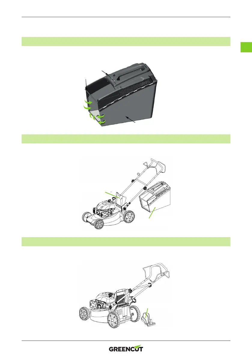 Rimuovere il sacchetto dal prato e sollevare il coperchio posteriore, quindi spingere il coperchio mulching verso la