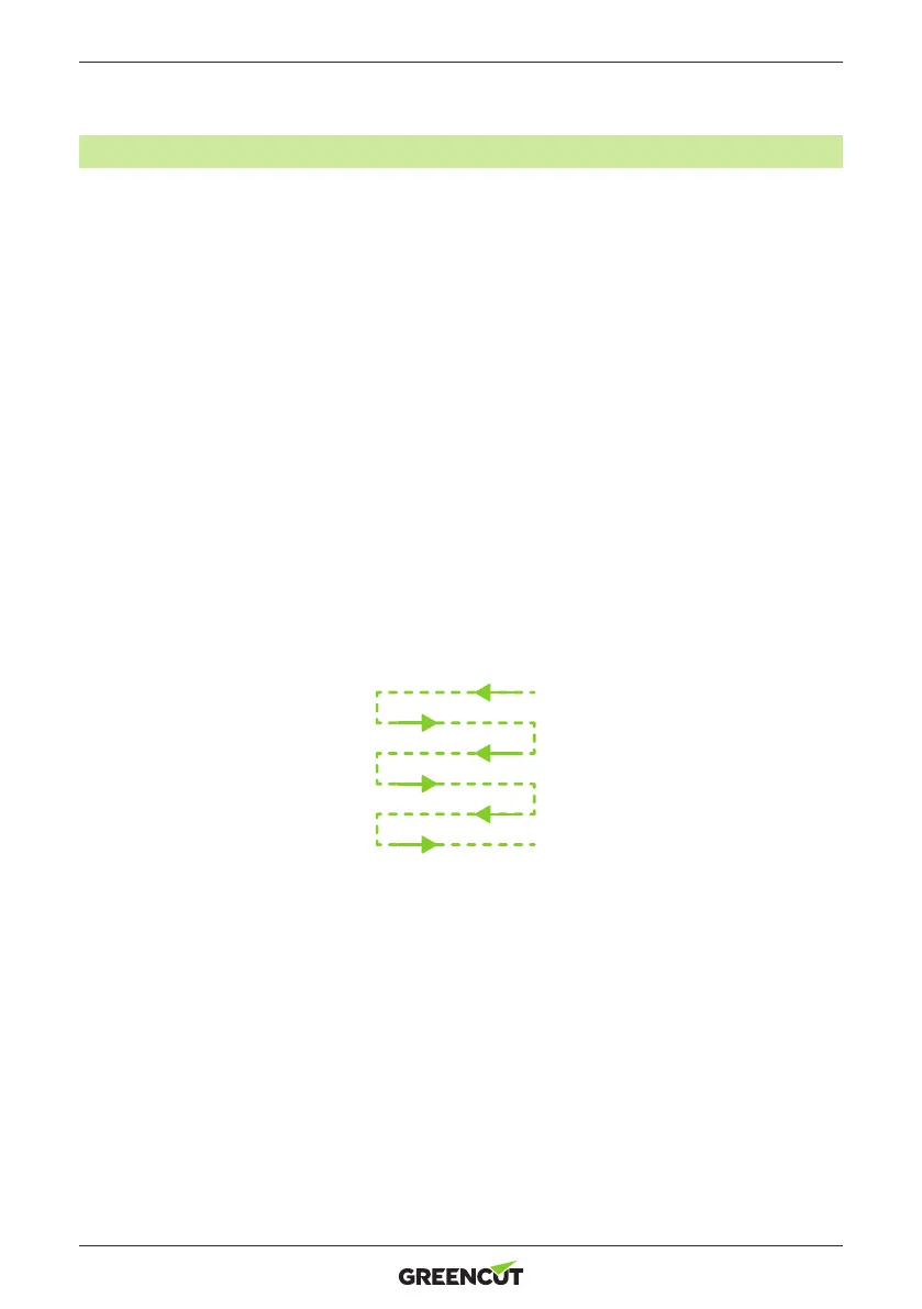of the work area, then turning at the end and mowing the next row and so on. Using a regular pattern helps keep
