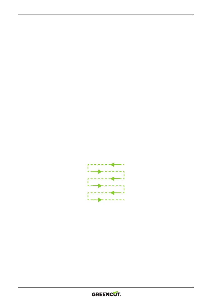 • Tagli l’erba in le leggermente sovrapposte. Uno schema efcace è tagliare in linee dritte, iniziando dall’angolo più