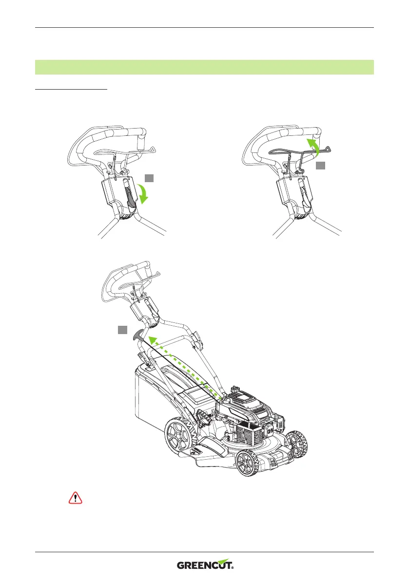 ATTENTION: The mower motor will start working as soon as the starter cord is pulled. Note that
