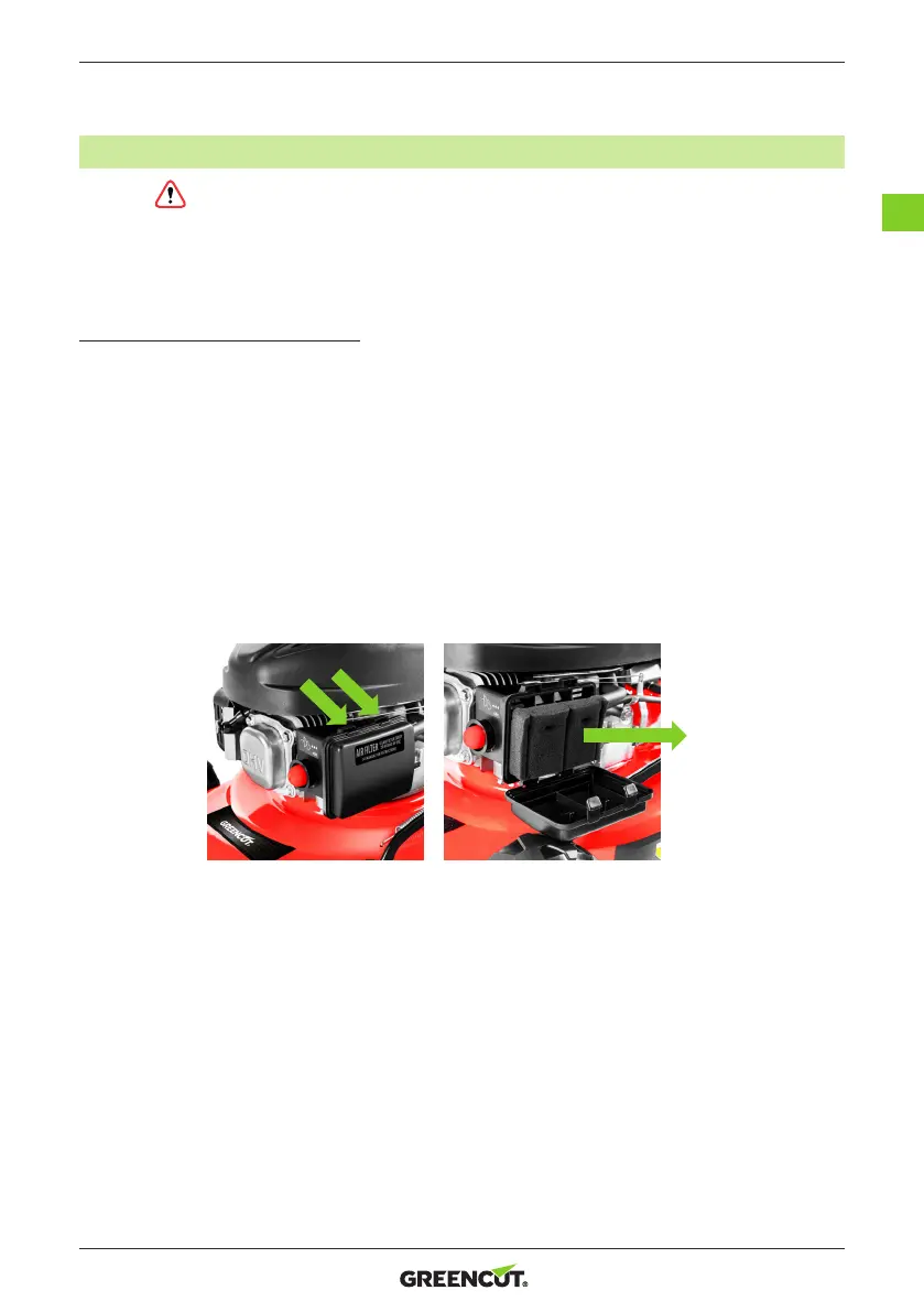• It is recommended to clean the air lter cover and air intake assembly of any dirt, cuttings, etc.