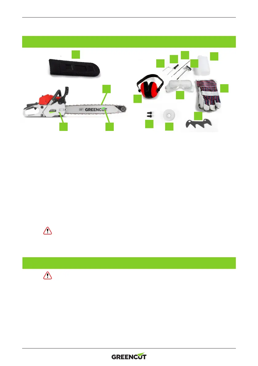 Apra la scatola ed installi la lama guida e la motosega nell’unità di potenza, come viene descritto a continuazione: