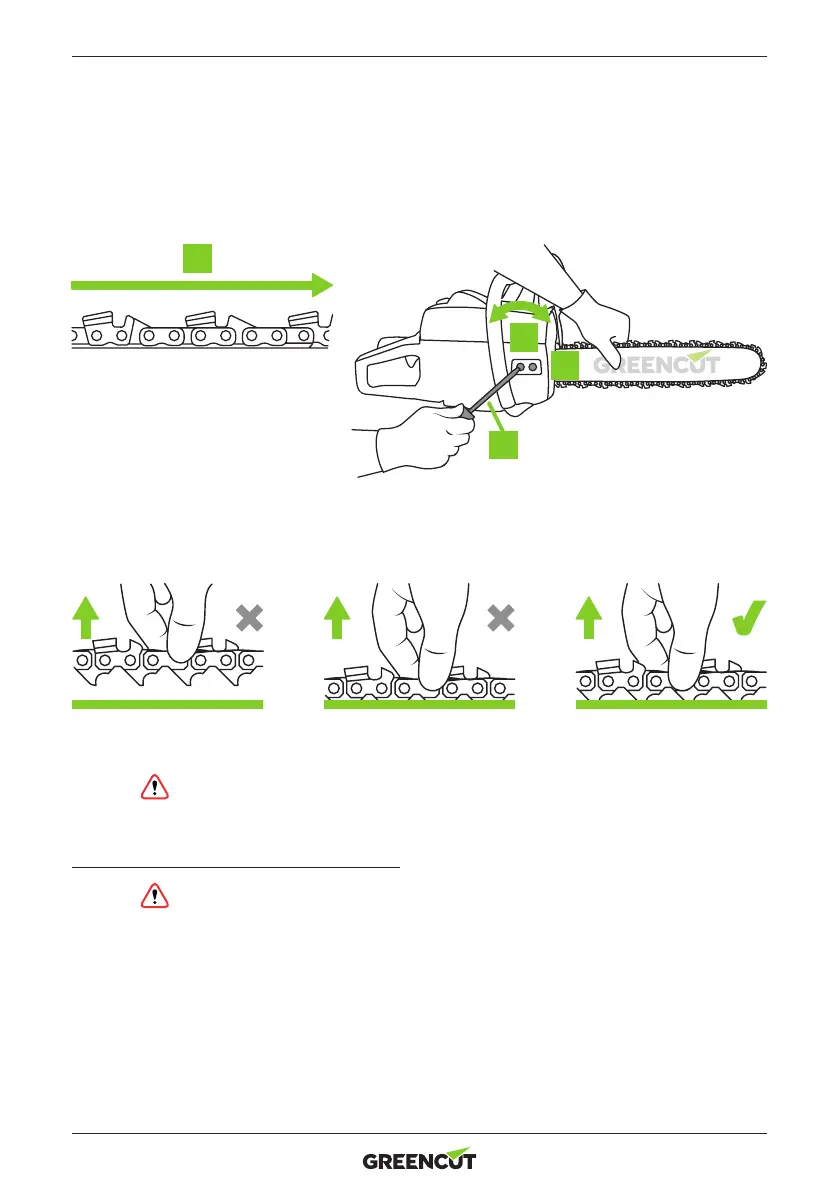 ATTENTION: A new chain will stretch when rst used. Check the chain tension regularly with a