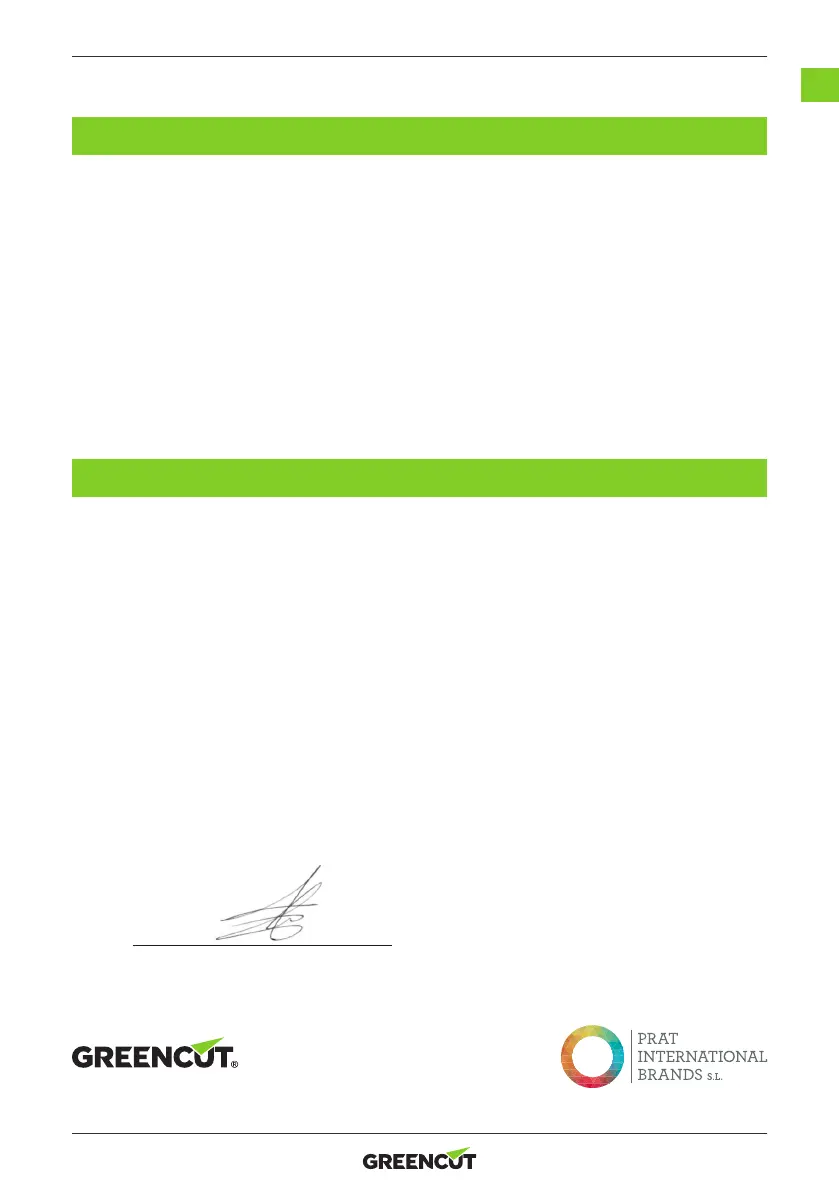 GREENCUT garantiza todos los productos por un periodo de 2 años (válido para Europa). La garantía está sujeta a la