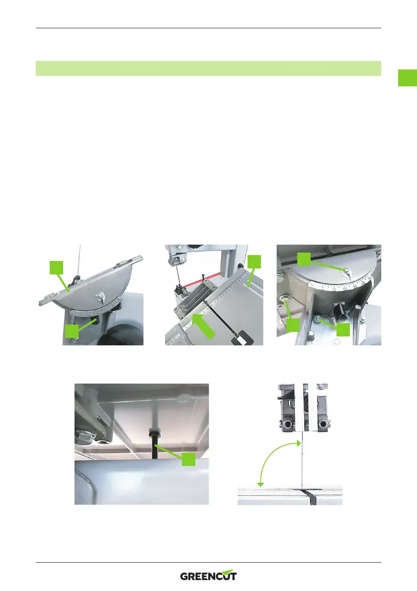 tavola sia a “0” e che la tavola sia a 90° rispetto alla lama della sega a nastro. Se è necessario regolare la