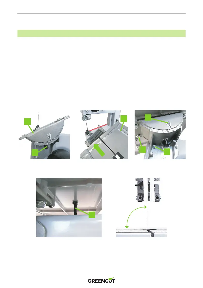6. The slot in the table must be aligned centrally with the blade. If the table needs to be adjusted laterally to