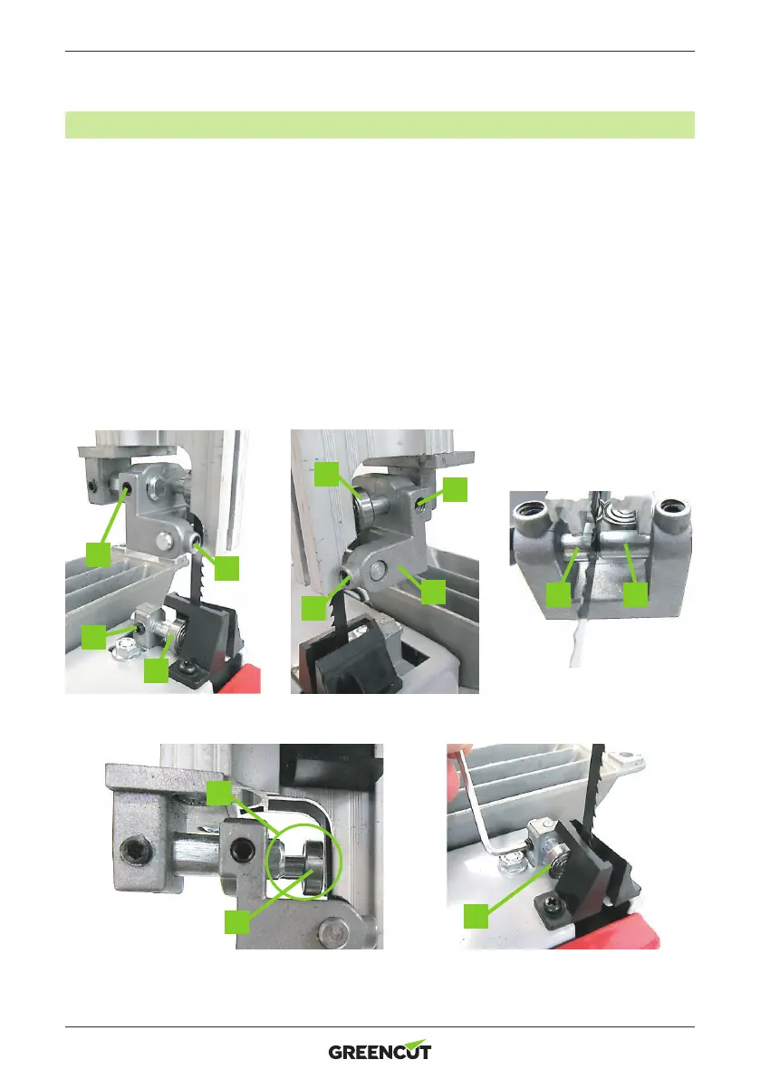 4. Schieben Sie das obere Gegendrucklager (K) so, dass es so nah wie möglich an der Hinterkante des Blattes