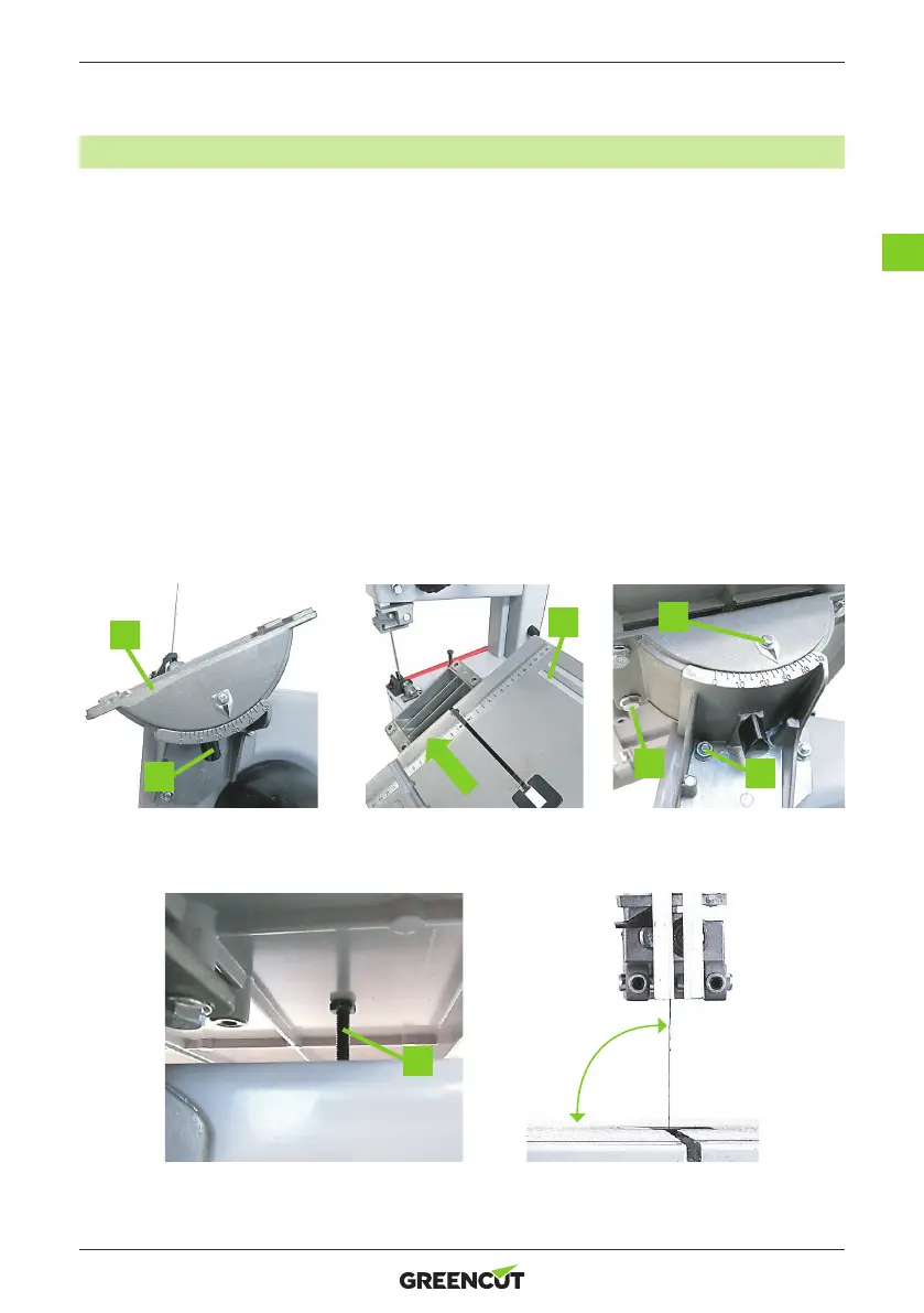 auf “0” und der Tisch auf 90° zum Bandsägeblatt bendet. Wenn es notwendig ist, die Anschlagschraube