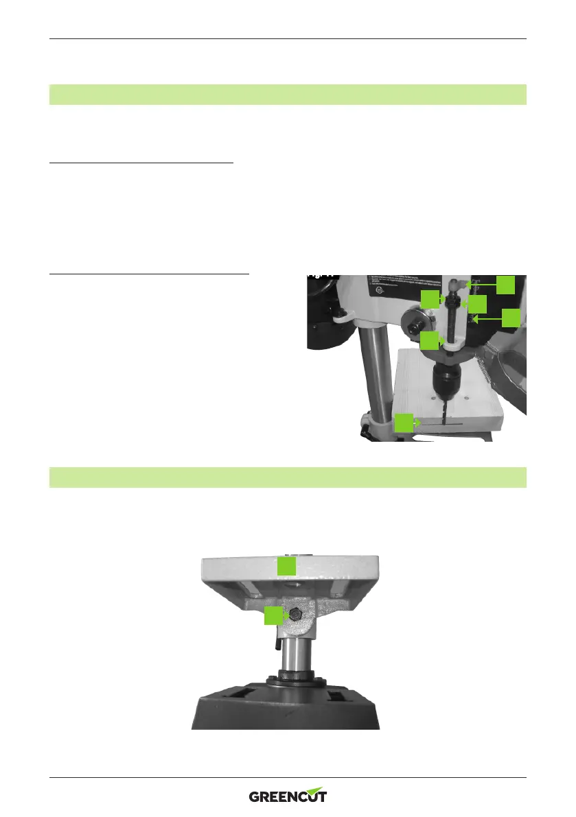 La butée de profondeur et l’échelle de profondeur vous permettent de percer des trous à une profondeur dénie.