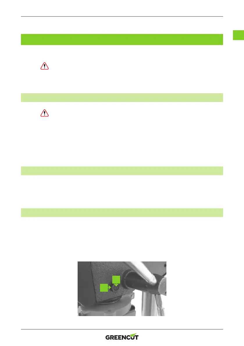 2. Tourner la vis de réglage (I) dans le sens des aiguilles d’une montre pour enlever le jeu. Vérier que le