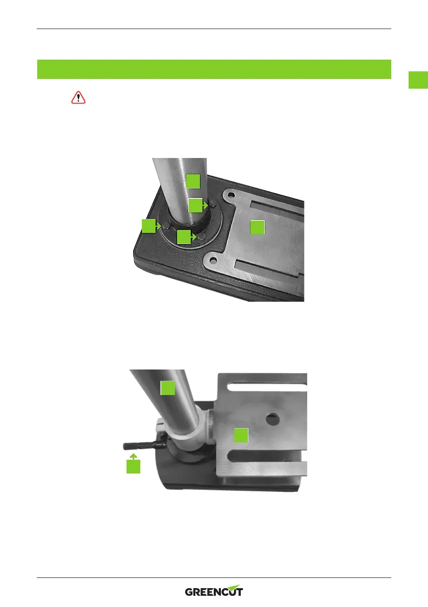1. Collocare la colonna (2) nella base (1) e allineare i fori della angia di montaggio della colonna con i fori della